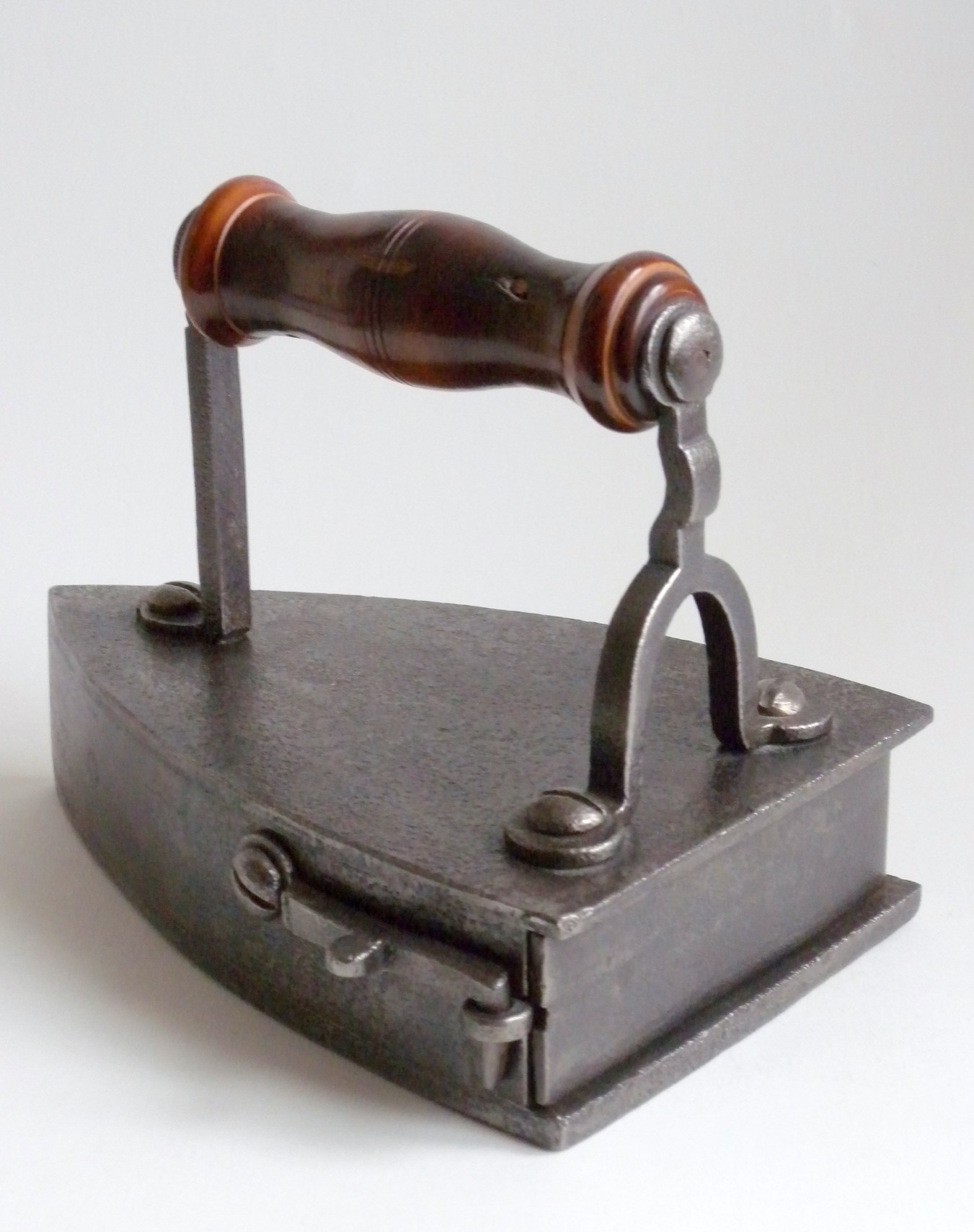**Fiche 28** : CHF 200.00 **Type** : Fer creux **Origine** : France **Age** : +/- 1880 **Matériel** : Fer forgé **Poids** : Sans lingot : 2023 gr. – Avec lingot : 2999 gr. **Dimensions** : L/L/H : 18 x 11.4 / 14 cm