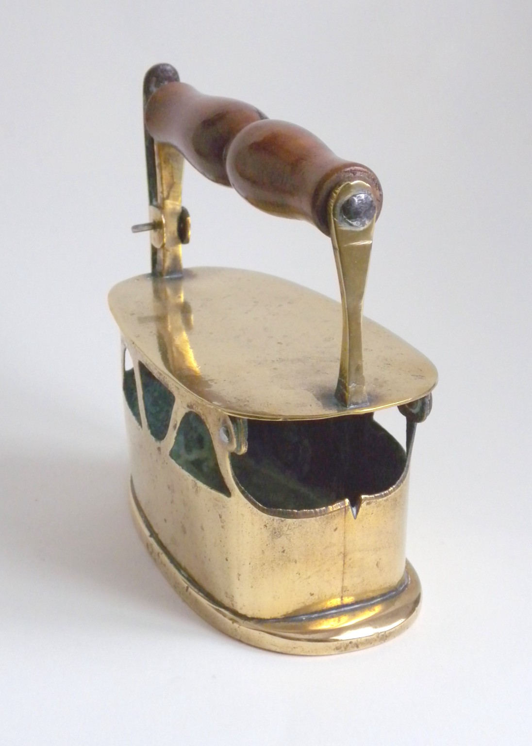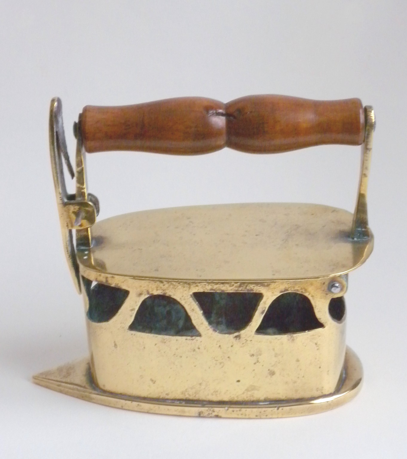 **Fiche 65** : CHF 280.00 **Type** : Fer à braises **Origine** : Pays-Bas **Age** : +/- 1890 **Matériel** : Laiton **Poids** : 807 gr. **Dimensions** : L/L/H : 17 / 7.8 / 15.4 cm **Détail** : ** **Chez – à** : Pays-Bas